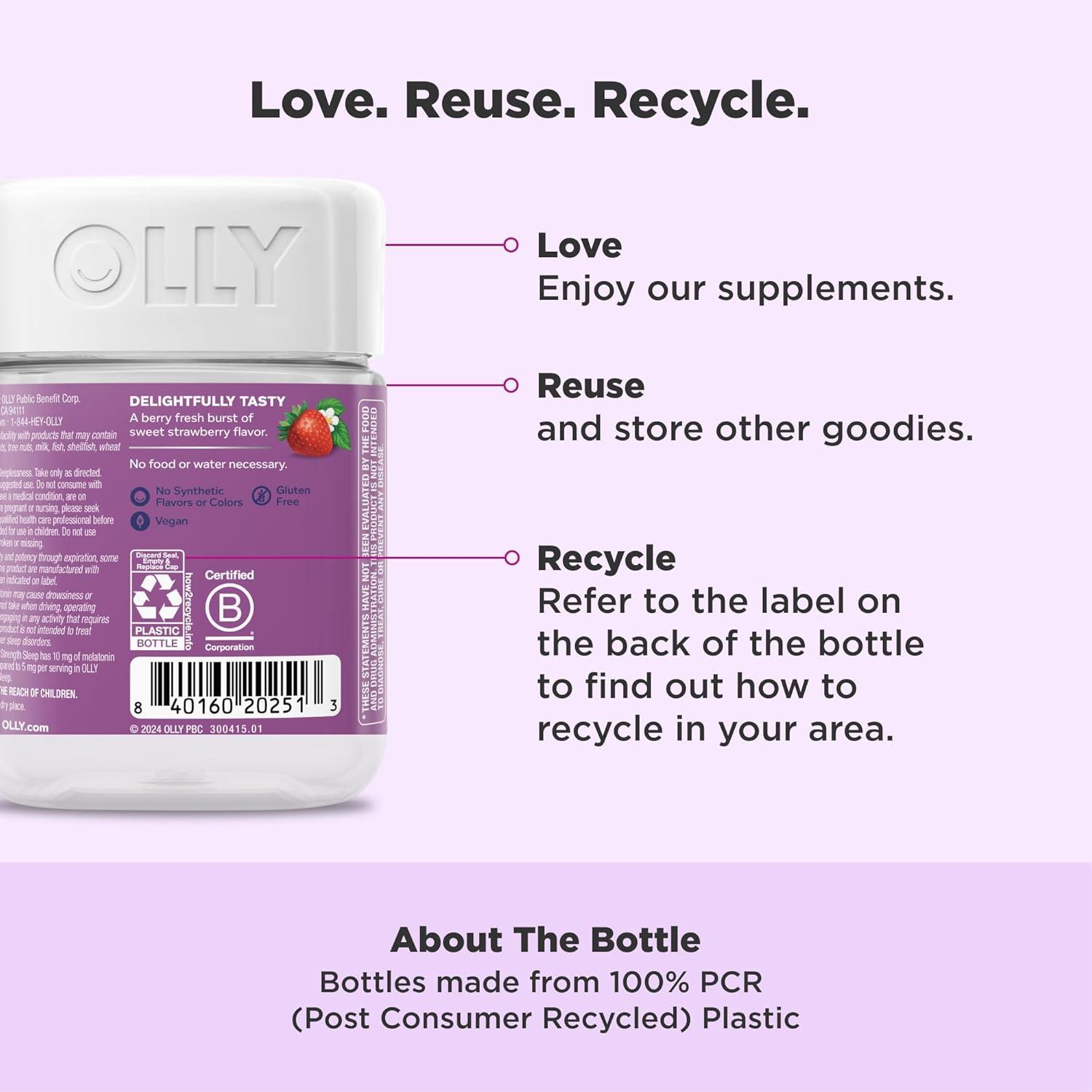- Don't wait, get up to 50% off on OLLY Max Strength Sleep Gummy, 10mg Melatonin, L-Theanine, Chamomile, Lemon Balm, Sugar Free, Vegetarian Sleep Aid, Strawberry - 70 Count(70 Count (Pack of 1)) during our end-of-season sale event.